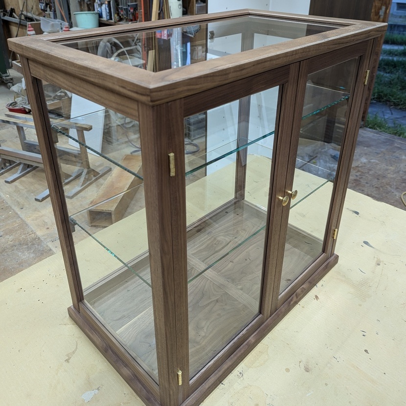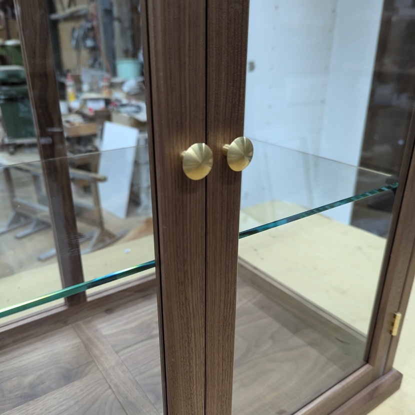 真鍮の取っ手と丁番でアンティークっぽく。面取りはすっきり目にしました。