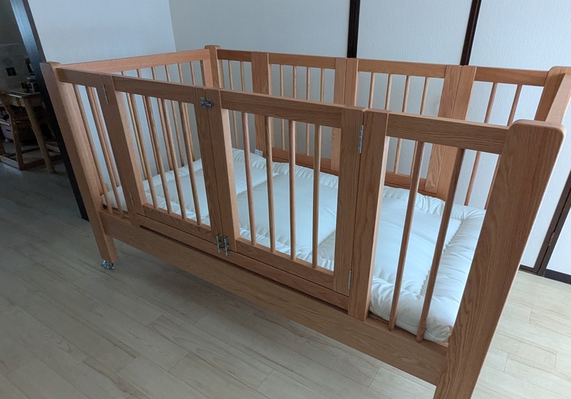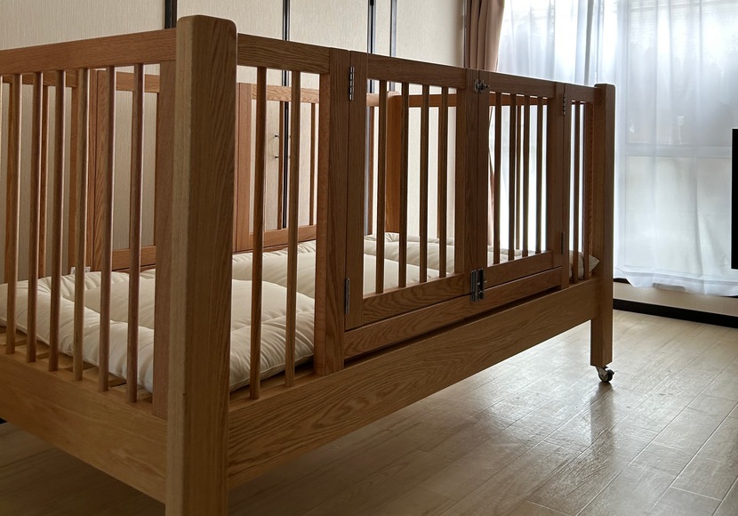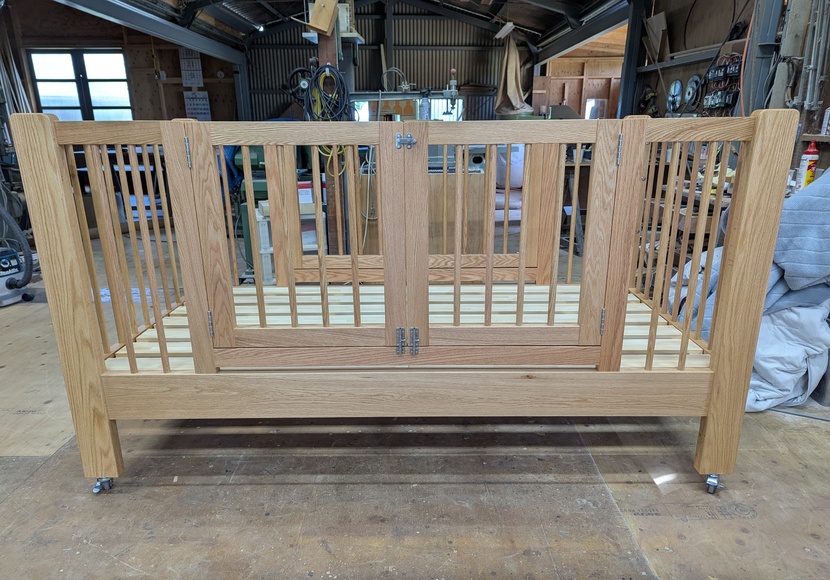 格子柵付きの特注ベッドを、オーク材で製作いたしました。